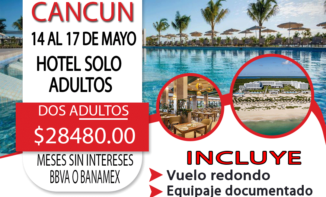 Salida (14/Mayo): QRO 14:12 – CUN 17:30